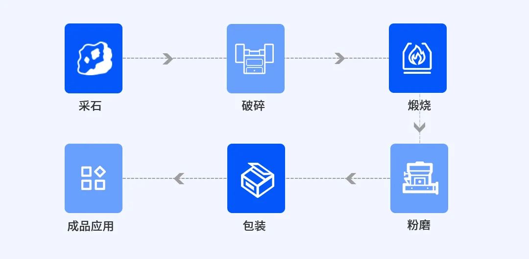 生石灰的工業化制備以石灰石煅燒為核心,涉及采石、破碎、煅燒、粉磨、包裝等多道工序。